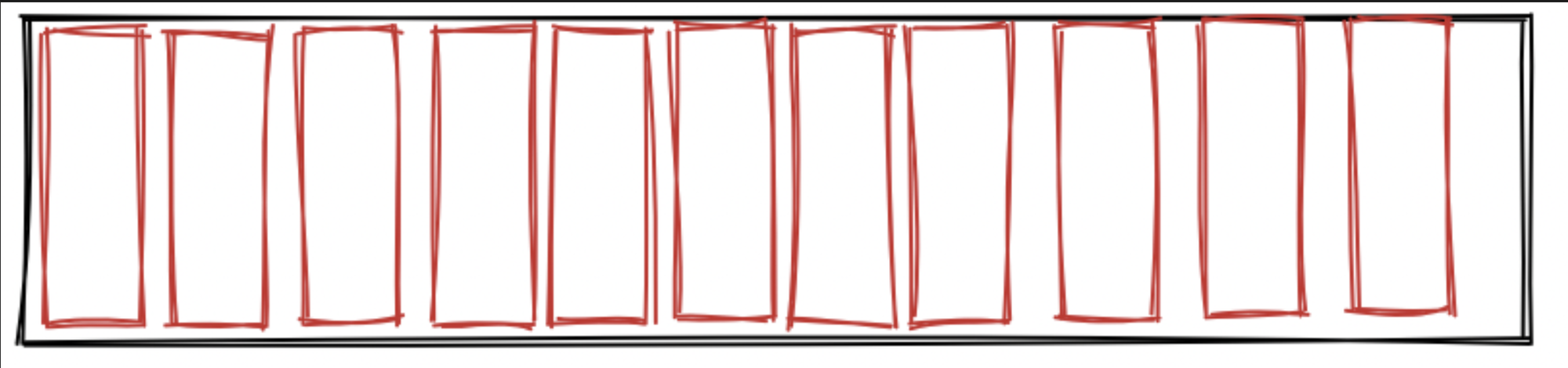 Currently, we have 1 buffer per chunk. These buffers are just large enough to store a single chunks data (as we compute how many faces it could be holding maximum) Once the compute shader is dispatched on a chunk, the buffer we allocated looks like so (Where red boxes represent a face)