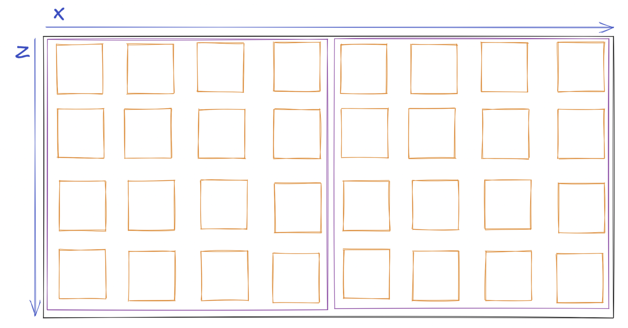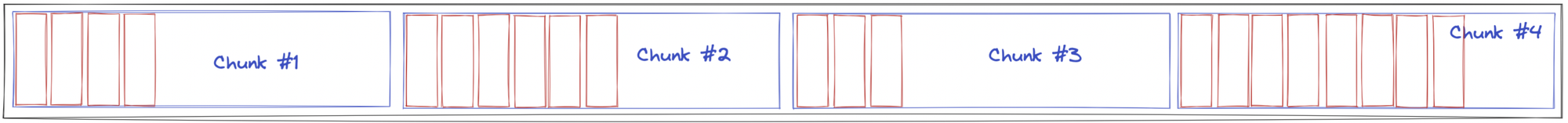 To make this tradeoff work for multiple chunks, we allocate a single buffer that can store any N amount of chunks with a worst case of chunks visible. The resulting buffer looks like this